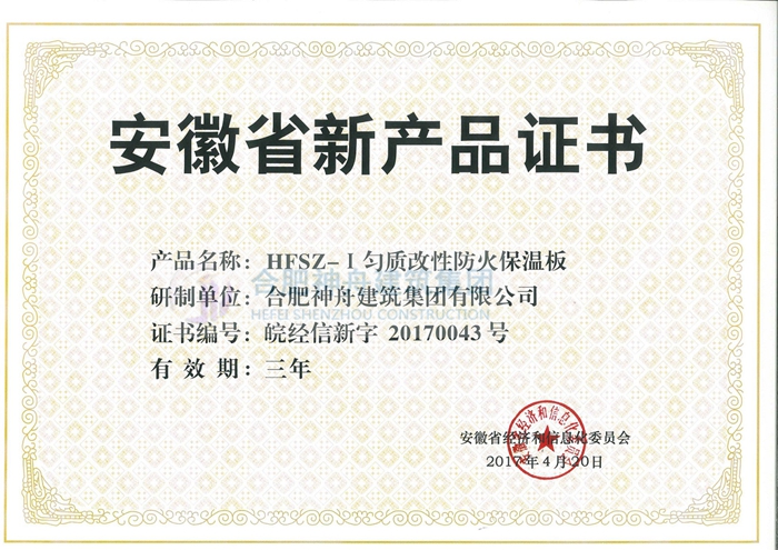 “竣捷”牌勻質(zhì)改性防火保溫板、耐堿玻璃纖維網(wǎng)格布、真石漆通過(guò)安徽省經(jīng)濟(jì)和信息化委員會(huì)的評(píng)審,榮獲了安徽省新產(chǎn)品榮譽(yù)證書(shū)